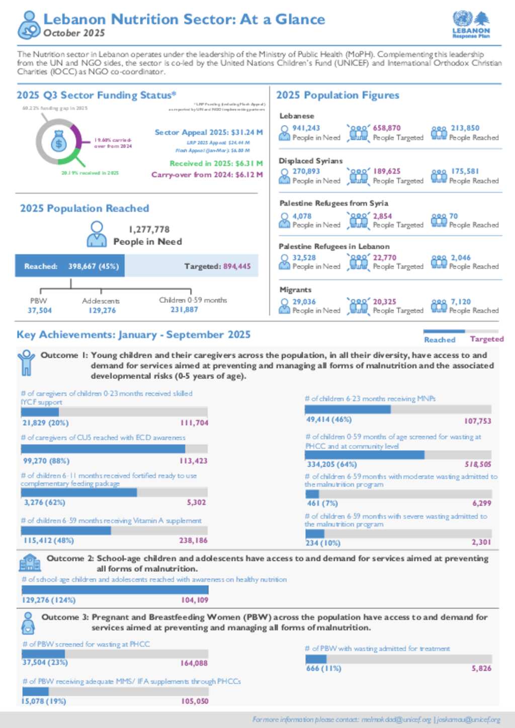 Lebanon Response Plan: Nutrition Sector At a Glance Report - Q3 2025