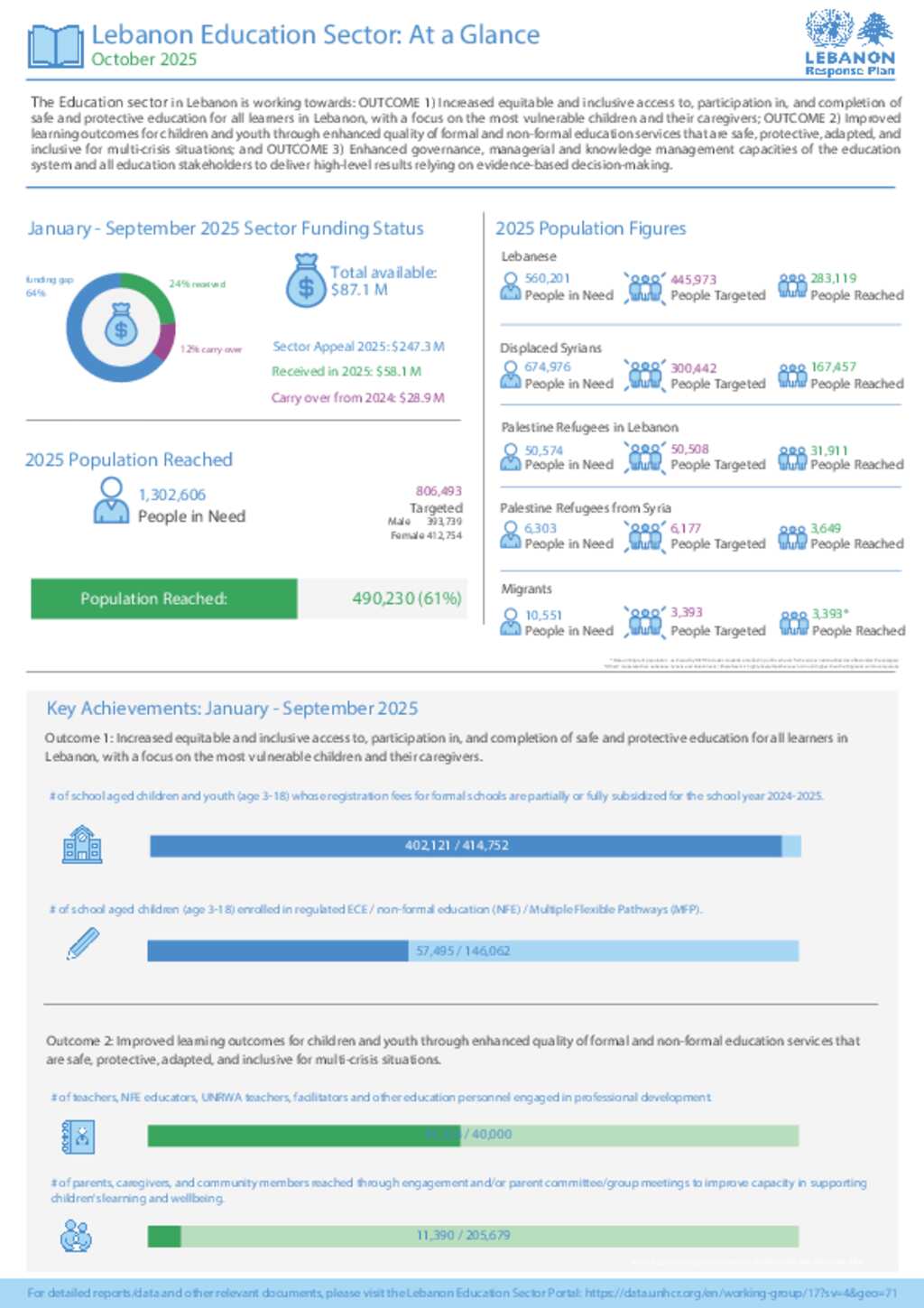 Lebanon Response Plan: Education Sector Dashboard - Q3 at a Glance 2025