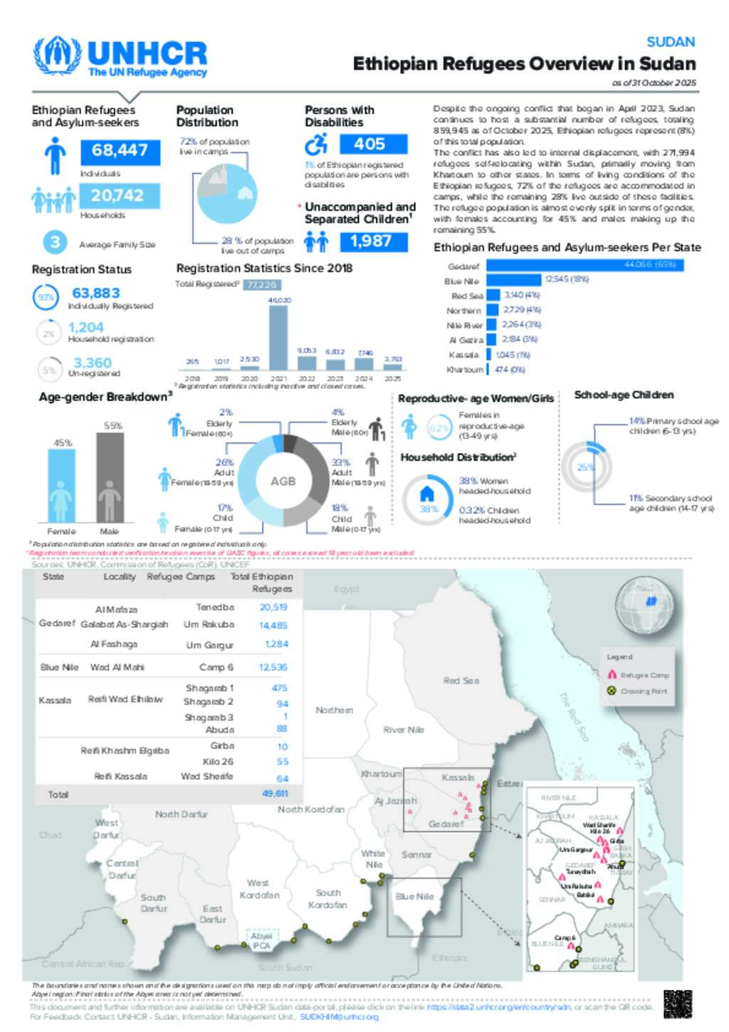 UNHCR Sudan - Ethiopian Refugees in Sudan Dashboard as of 31 October 2025