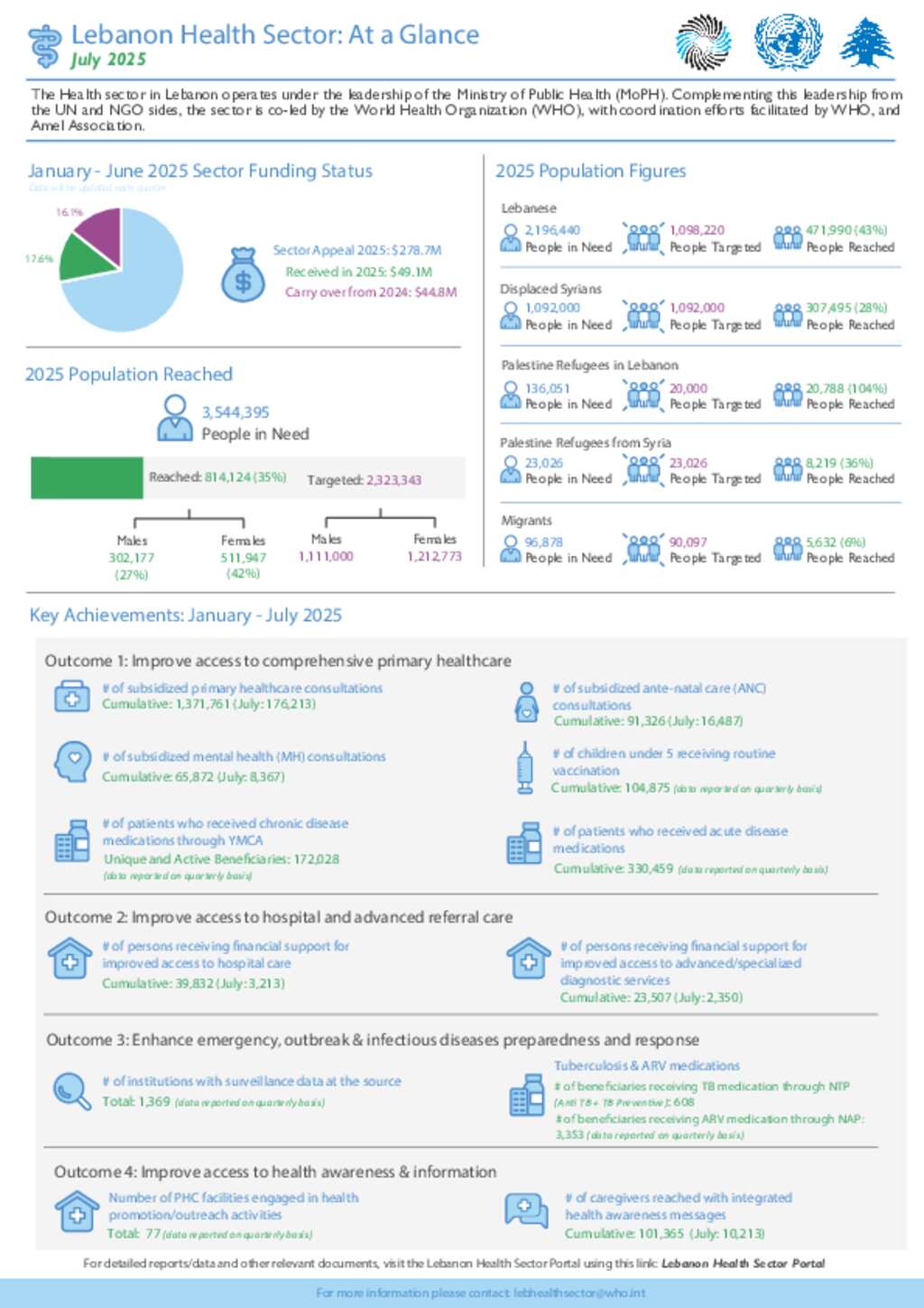 Lebanon Response Plan: Health Sector At a Glance Report - July 2025