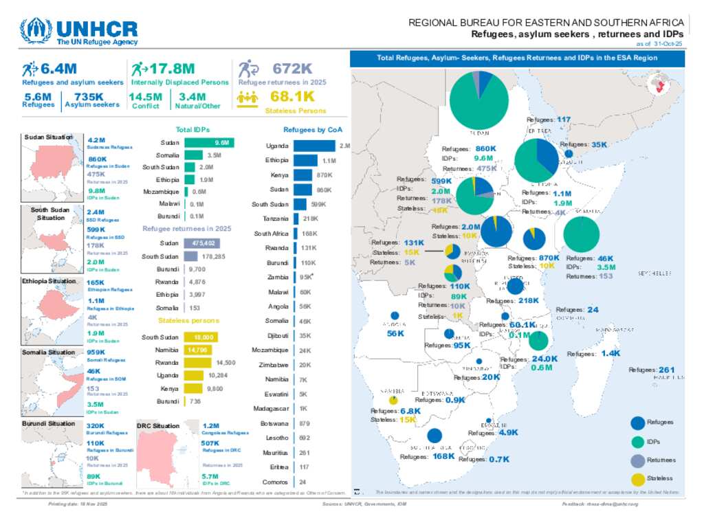 Regional Dashboard RBESA: Refugees and asylum-seekers by situation - 31 October 2025