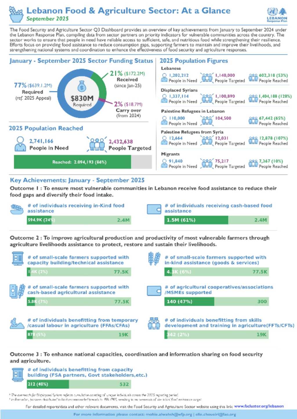 Lebanon Response Plan: Food Security Sector At a Glance Report - Q3 2025