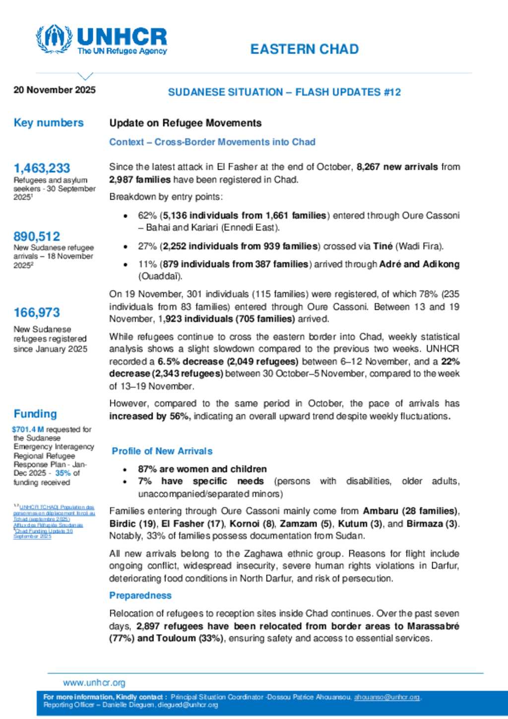 Flash Update #30 New Sudanese Refugee Influx into Chad