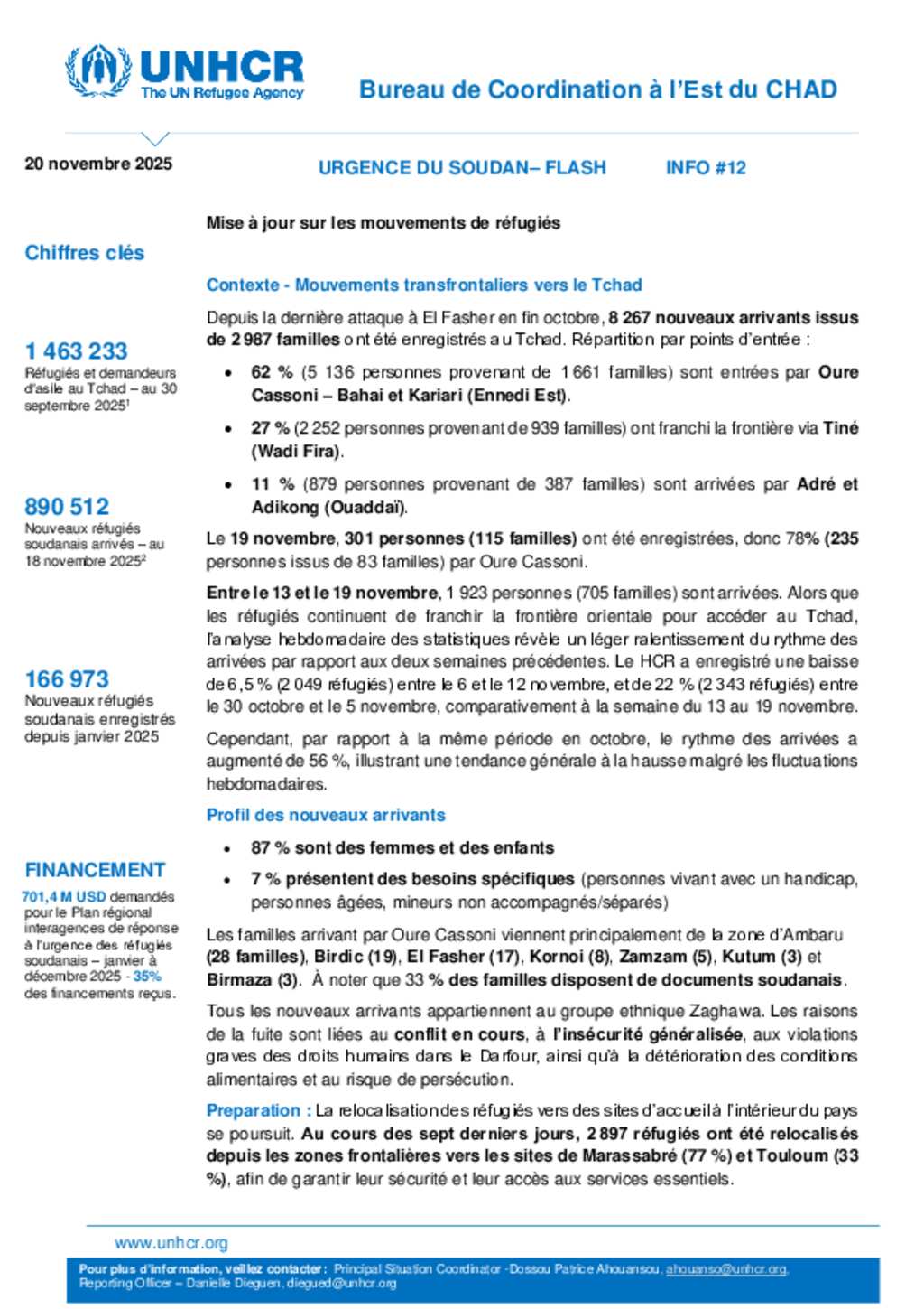 Flash Update #30 Nouvel afflux de réfugiés soudanais au Tchad