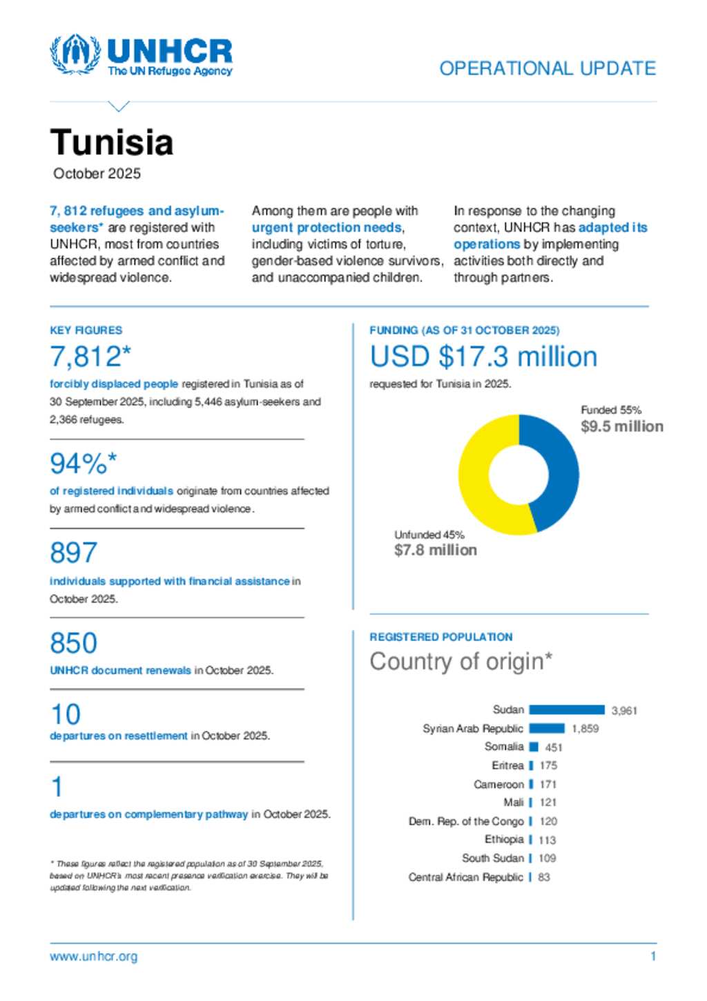 UNHCR Tunisia Monthly Operational Update (October 2025)