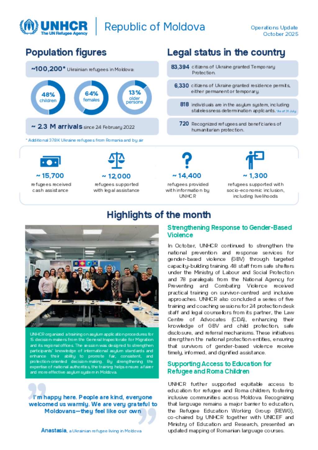 Ukraine Situation - Moldova: Moldova - Operations Update (October 2025)