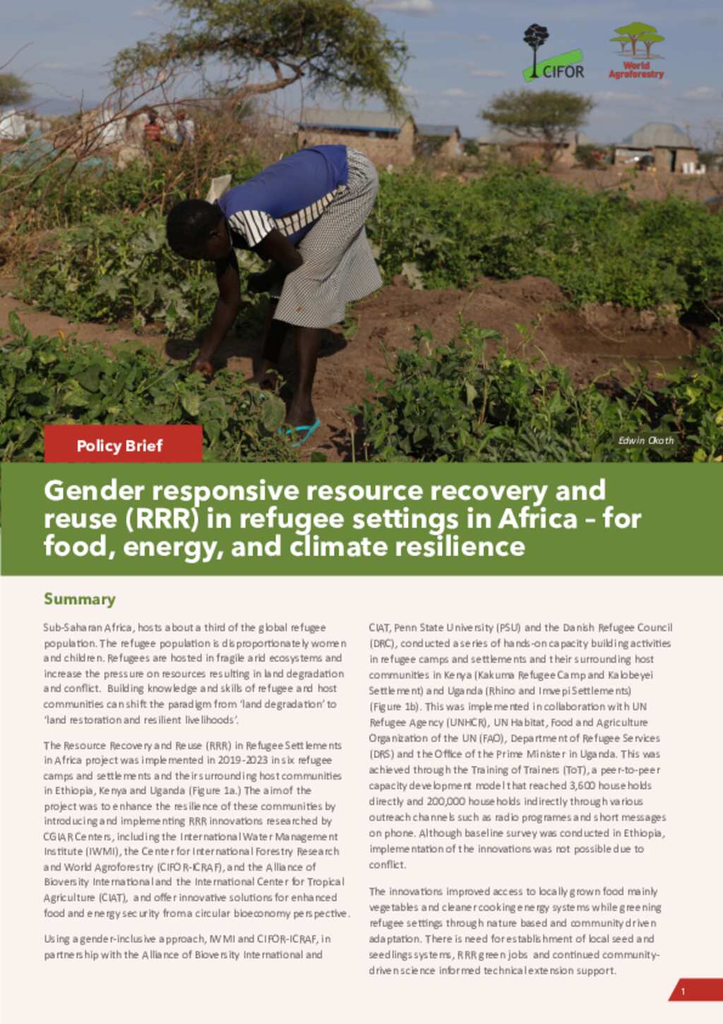 CIFOR-ICRAF: Gender responsive resource recovery and reuse (RRR) in refugee settings in Africa – for food, energy, and climate resilience