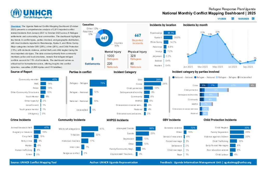 Uganda Refugee Response: Conflict Mapping Dashboard October 2025