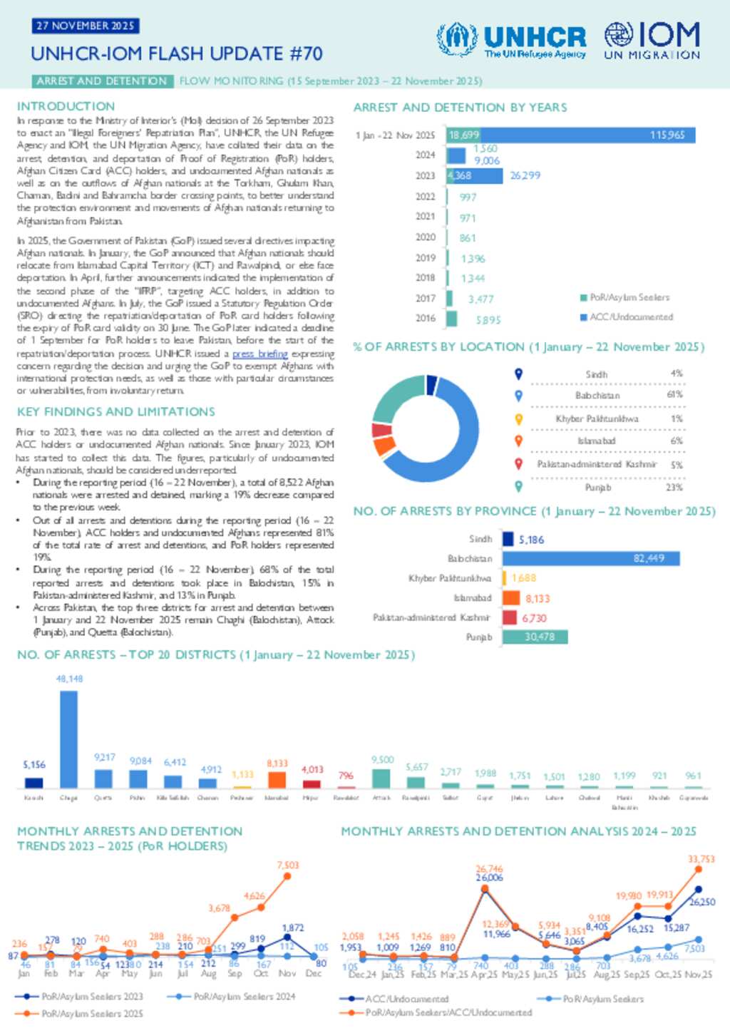 UNHCR-IOM Pakistan Flash update # 70 on Arrest and Detention/Flow Monitoring, 15 Sep 2023 to 22 November 2025