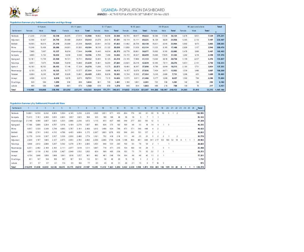 Uganda - Refugee Statistics November 2025 - Active Population by Settlement