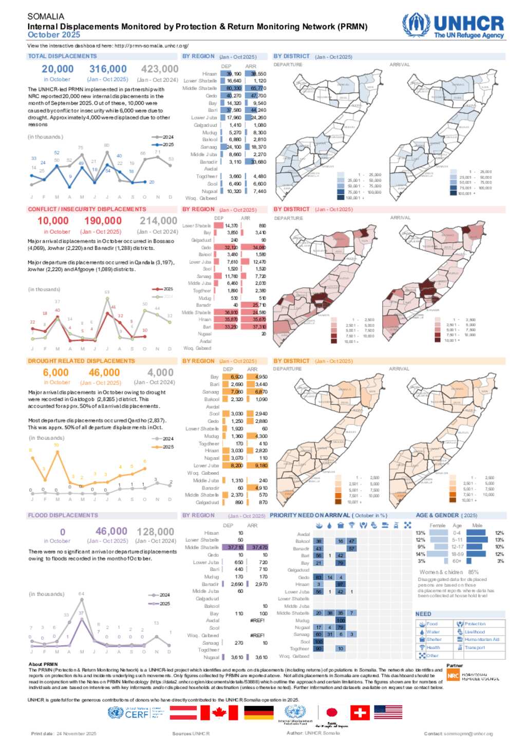 UNHCR Somalia PSMN Internal Displacements Dashboard- Oct 2025
