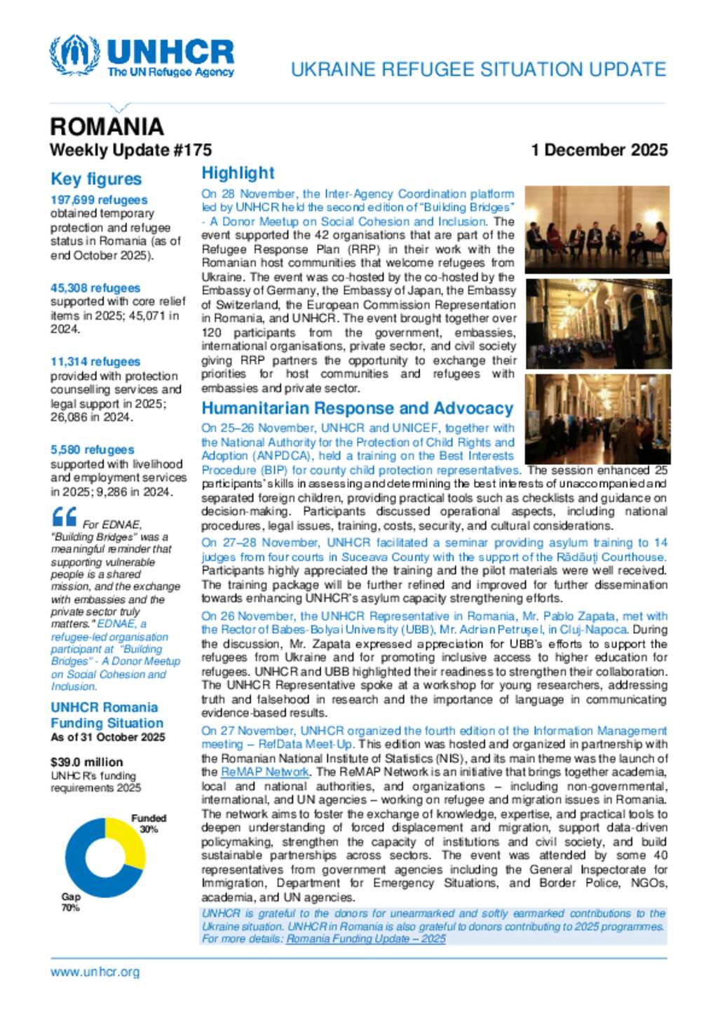 UNHCR Romania Ukraine Refugee Situation Update - 1 December 2025