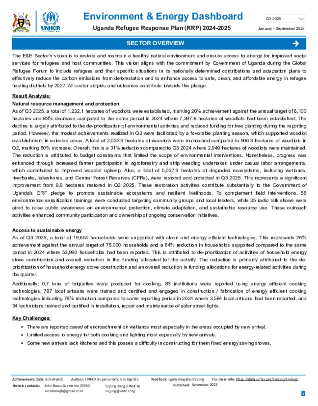 Uganda Refugee Response: Environment and Energy dashboard Quarter 3 2025