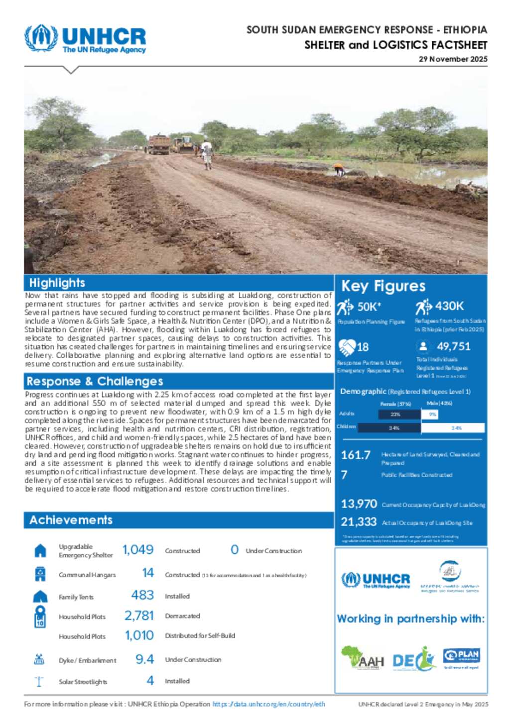 UNHCR Ethiopia | Thematic Factsheet Shelter | 29 November 2025