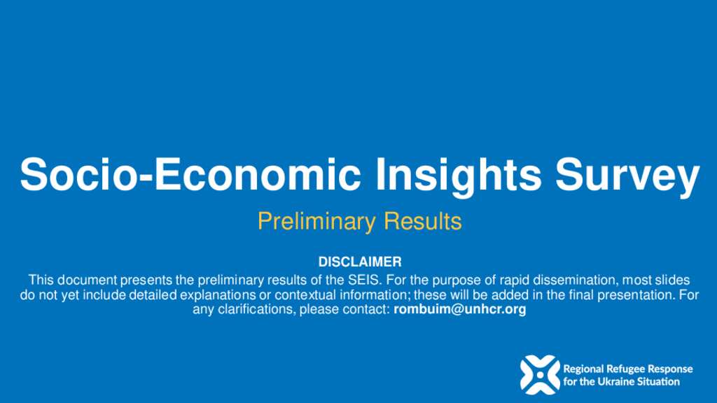 In 2025, UNHCR conducted a Socio-Economic Insights Survey (SEIS), focusing on refugees from Ukraine living in Romania. The assessment involved 599 adult respondents from refugee households across 23 counties and Bucharest, in Romania. The information gathered is crucial for humanitarian planning as well as identifying service gaps, seeking to capture and understand the needs of refugees in Romania, focusing on the in-country refugee population; the level of socio-economic integration and access to national systems; service gaps and refugees’ priorities for the coming year; and identifying changing trends in refugees’ needs. These findings represent preliminary results and may be refined as further analysis is conducted.