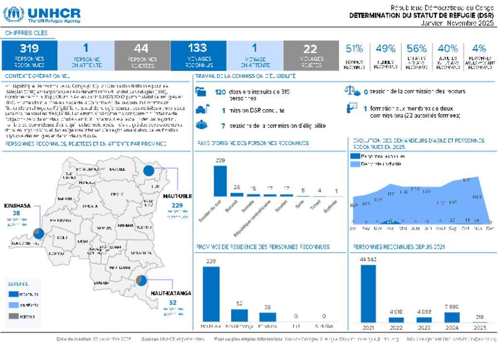 Détermination du statut de réfugié (DSR) en République Démocratique du Congo de janvier à novembre 2025