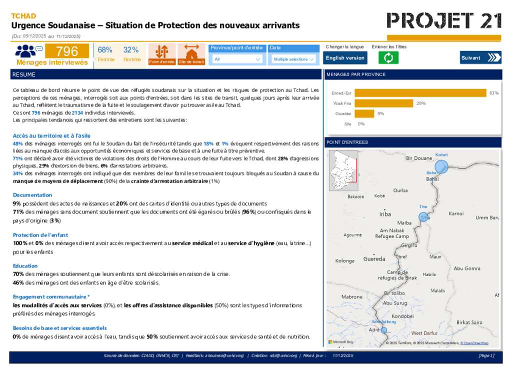 P21 - TCHAD | Dashboard Résultats Préliminaires Monitoring Urgence soudanaise (04 - 11 Dec 2025 - FR)