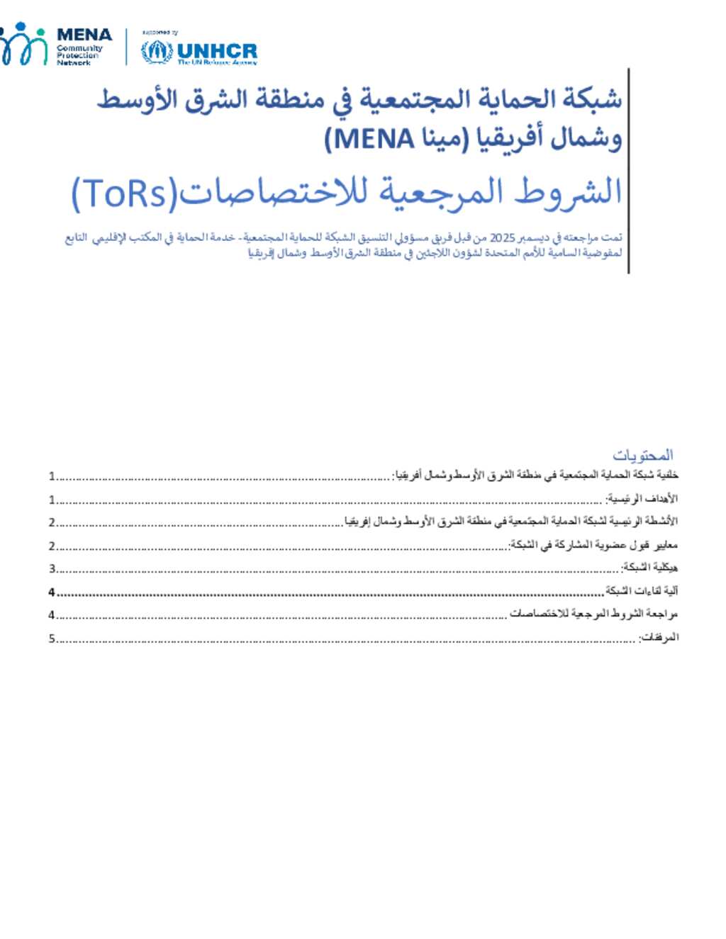 (AR)MENA Community Protection Network Revised Terms of Reference (ToRs) 2025