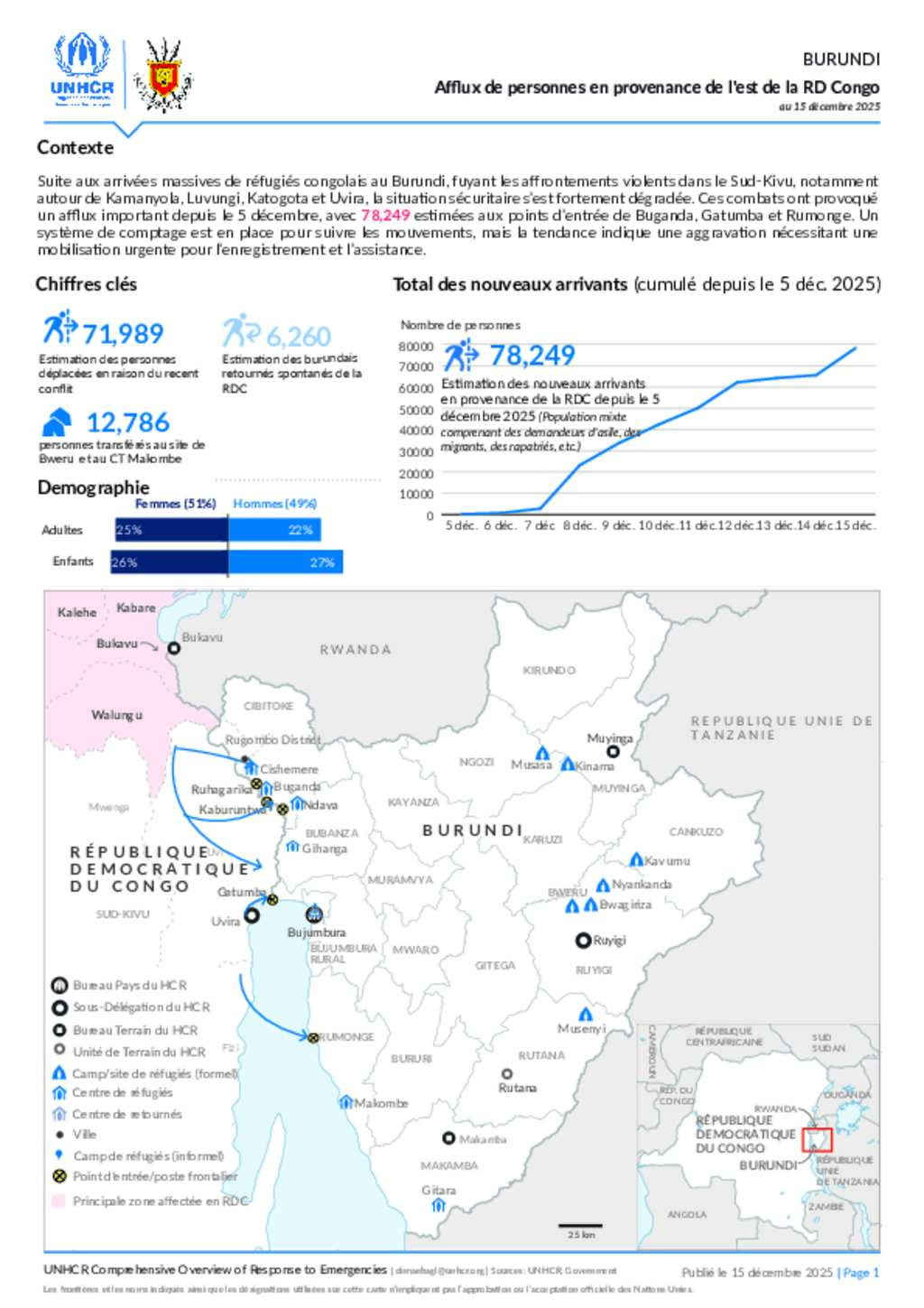 Statistiques du nouvel afflux en provenance de la RDC - 15 décembre 2025