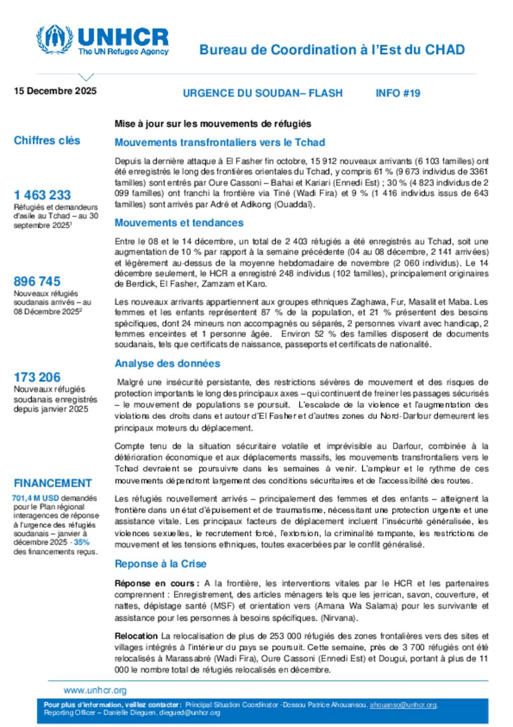 Flash Update #37 Nouvel afflux de réfugiés soudanais au Tchad