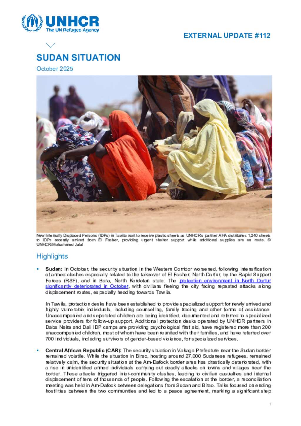 Sudan Situation: UNHCR Monthly External Update #112 - October 2025