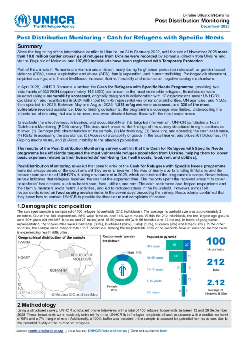Romania - Post Distribution Monitoring for Cash for Refugees with Specific Needs - December 2025