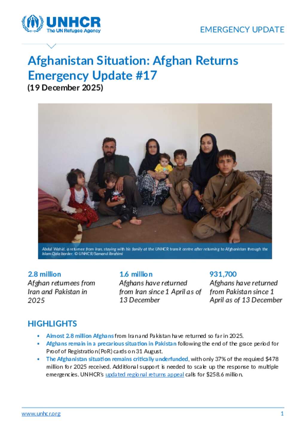 Afghanistan Situation: Afghan Returns from Iran and Pakistan Emergency Update #17