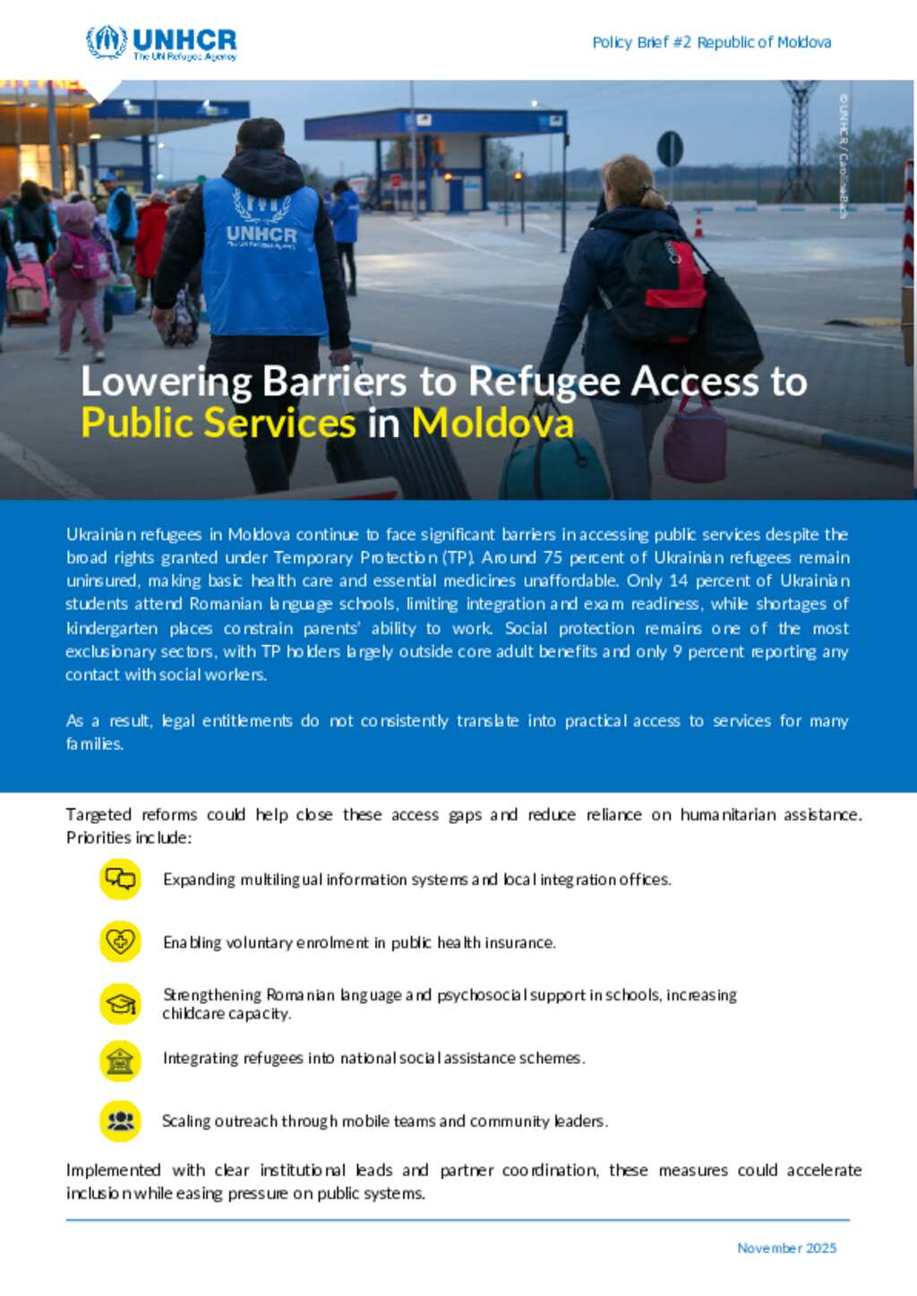 Ukraine Situation - Moldova : Policy Brief - Lowering Barriers to Refugee Access to Public Services in Moldova
