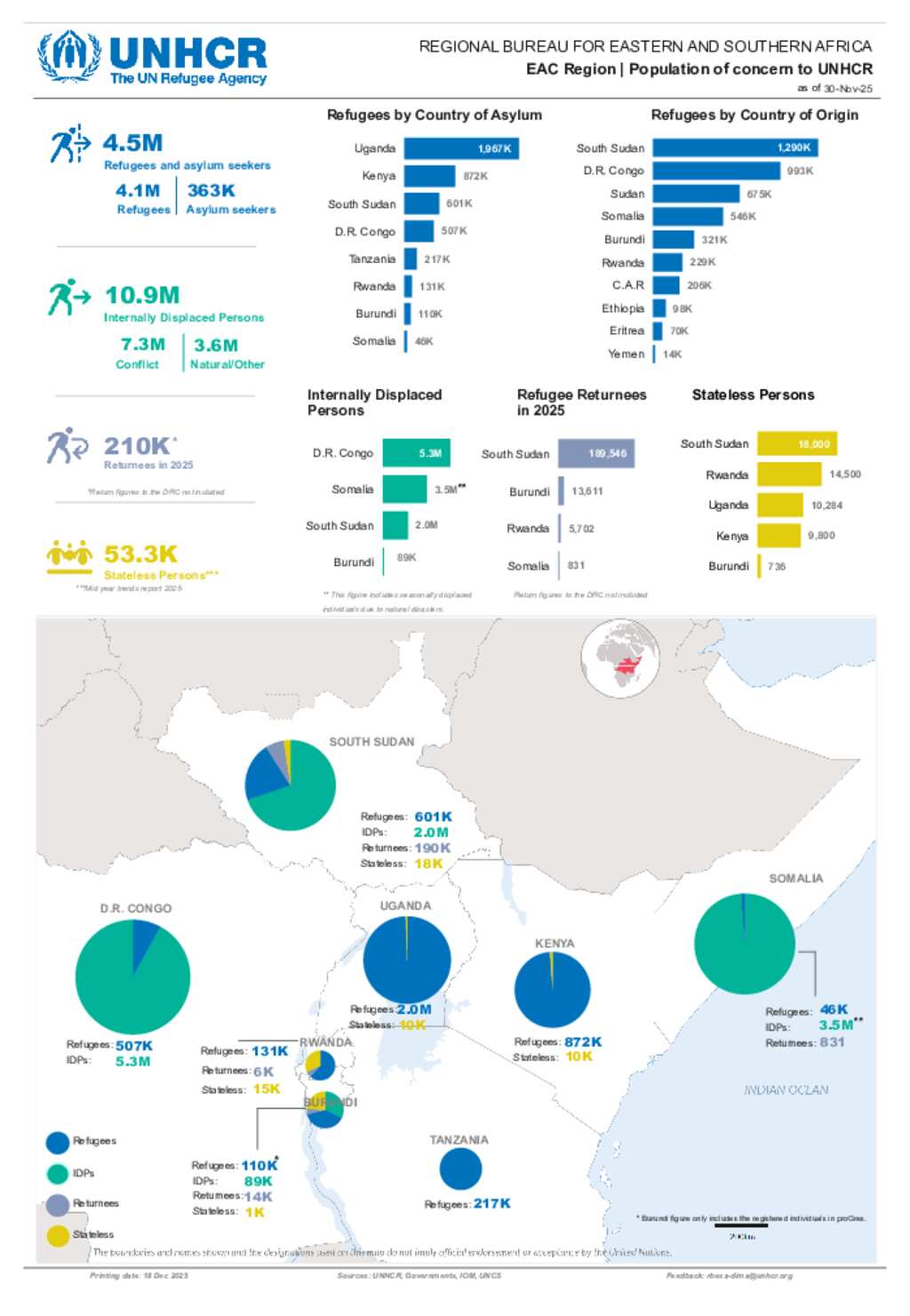 Regional Dashboard RBESA: Refugees, returnees and internally displaced persons in the EAC region - 30 November 2025