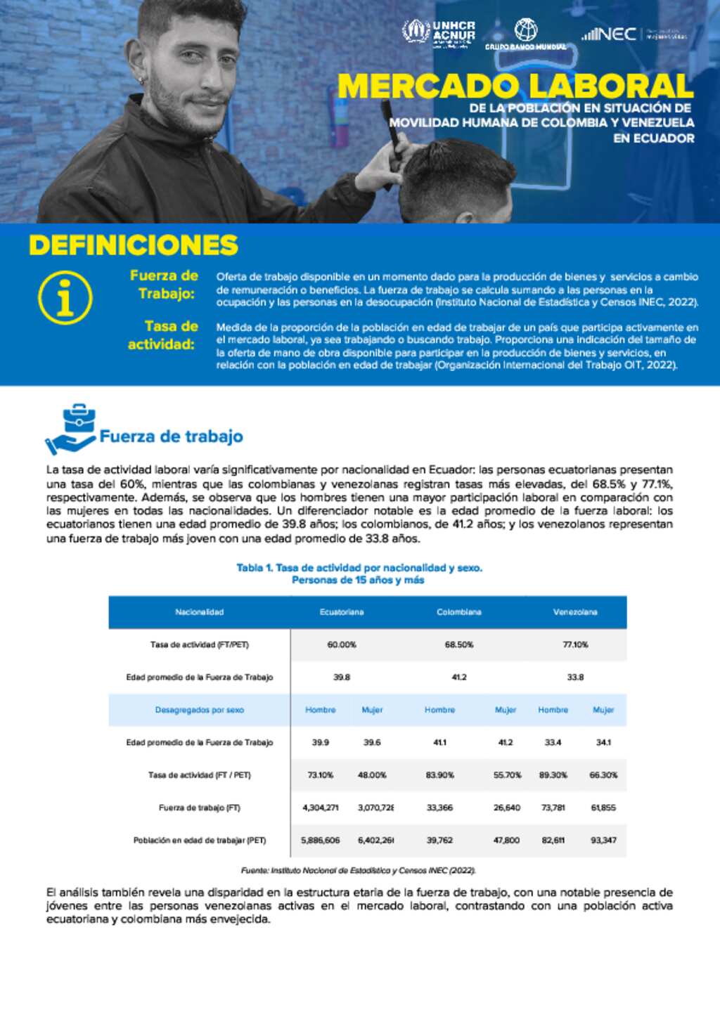 Breve reseña sobre la participación en el mercado laboral de la población en situación de movilidad humana en Ecuador a partir del VIII Censo de Población y VII de Vivienda 2022