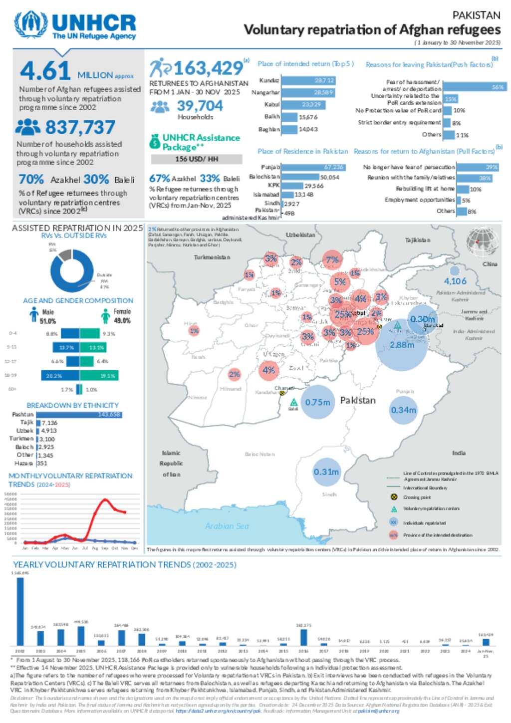 UNHCR - Pakistan Voluntary Repatriation of Afghan Refugees as of November 30, 2025