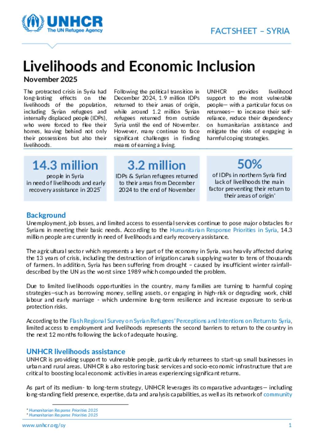 UNHCR Syria Livelihoods & Economic Inclusion, November 2025