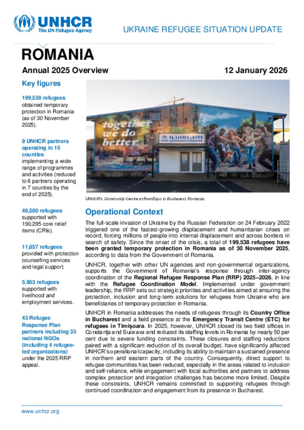 UNHCR Romania - Ukraine Situation Annual 2025 Overview