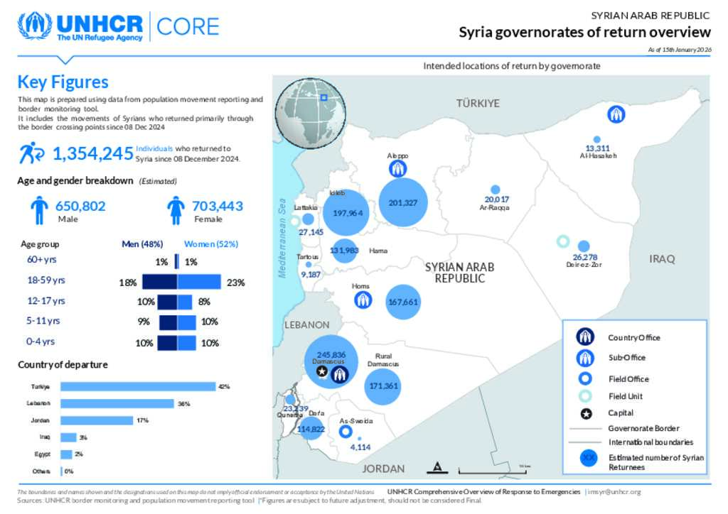 Syria Governorates of Return Overview (As of 15 Jan 2026)
