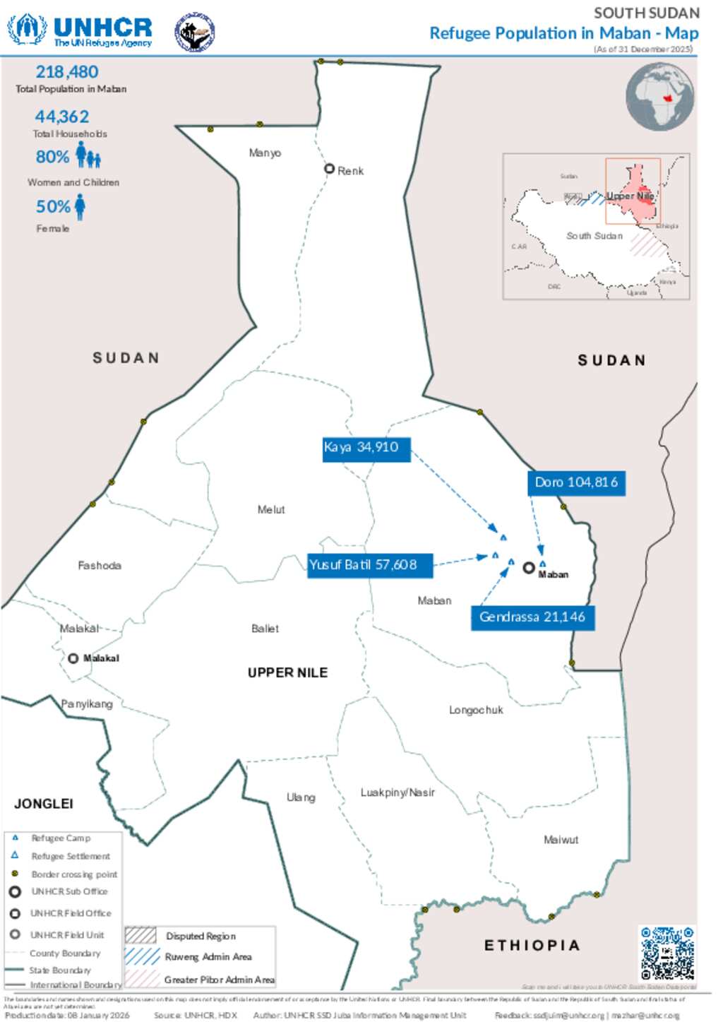 South Sudan - Refugee Population - Maban - 31 December 2025