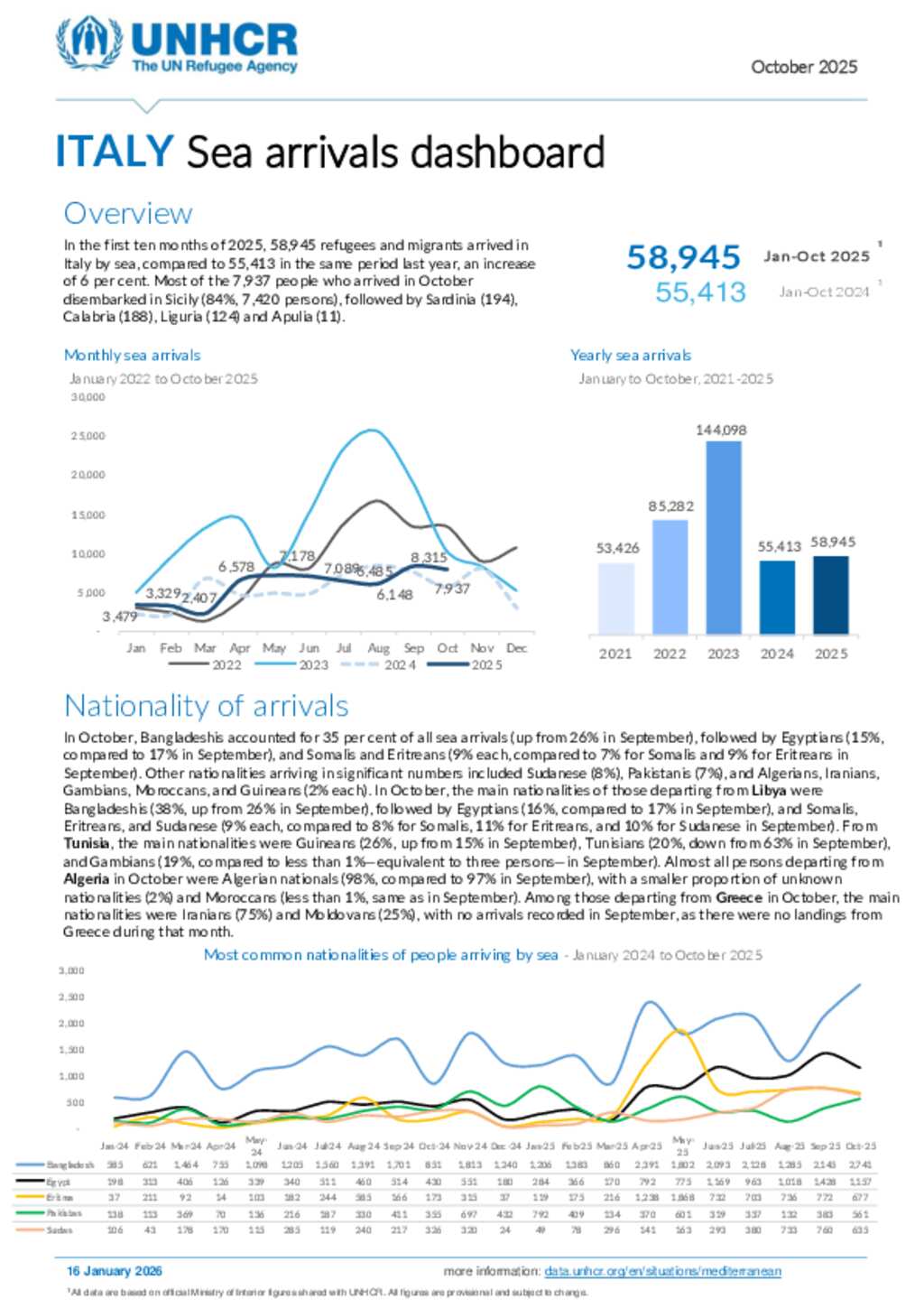 Italy Sea Arrivals Dashboard October 2025