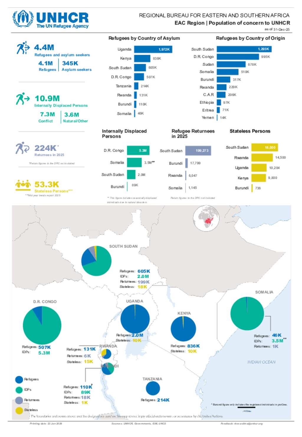 Regional Dashboard RBESA: Refugees, returnees and internally displaced persons in the EAC region - 31 December 2025