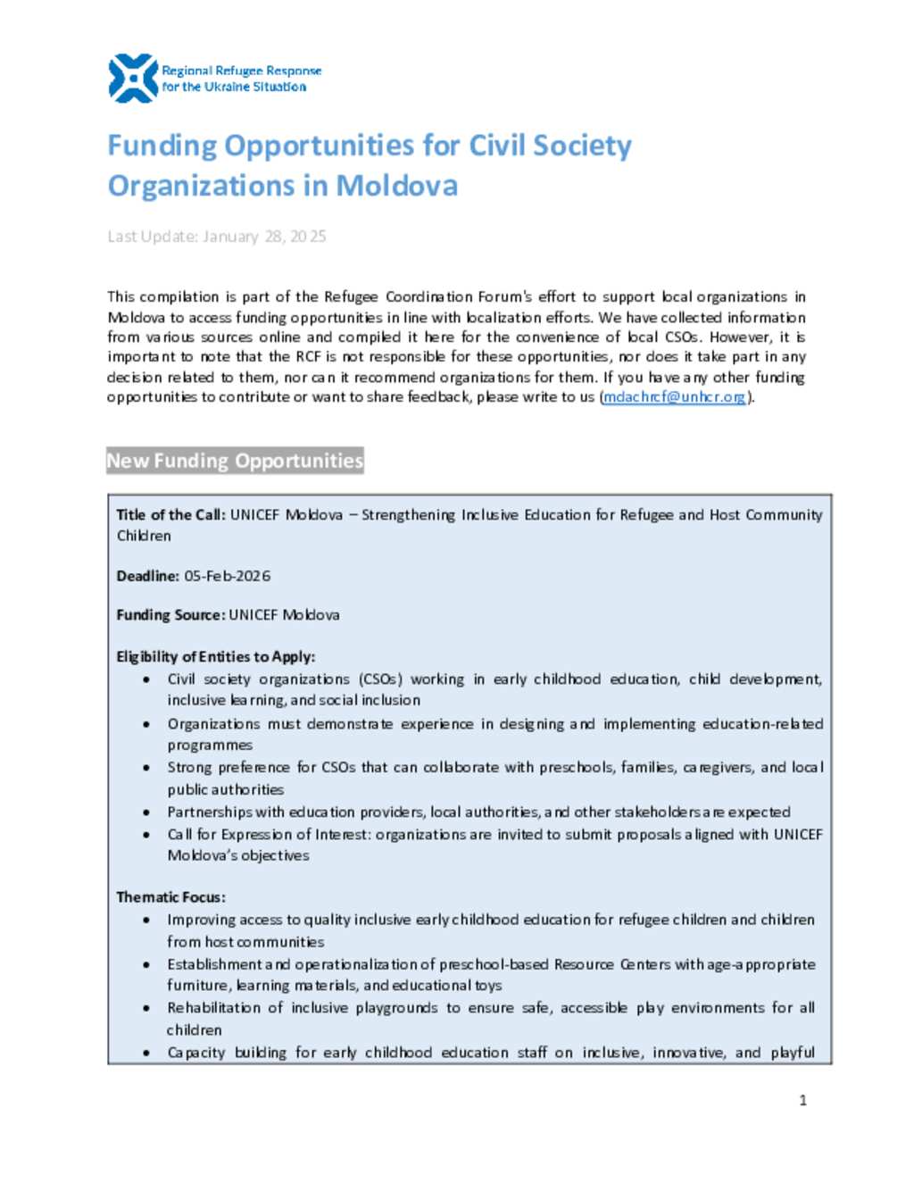 Ukraine Situation - Moldova: Funding Opportunities for Local CSOs in Moldova (February 2026) (EN)