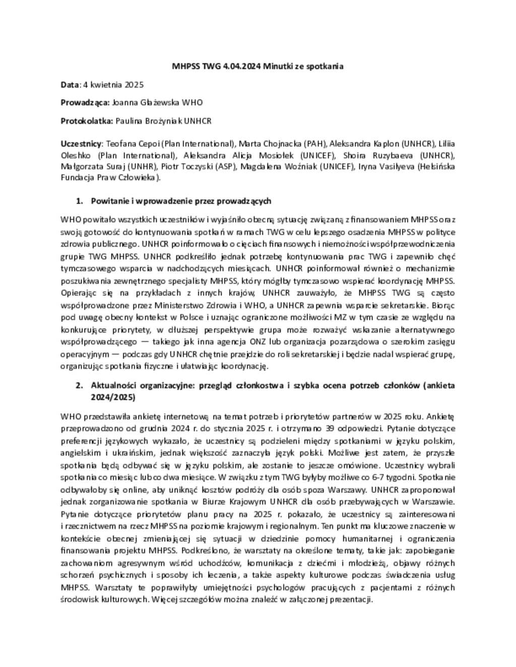 Poland: MHPSS TWG- meeting minutes (04 April 2025)