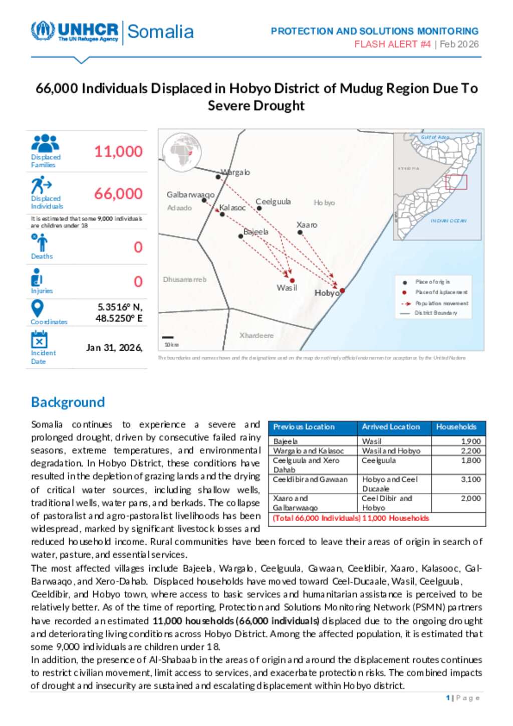 Flash Alert #4_Severe Drought in Hobyo District of Mudug Region Displaces 66,000 Individual