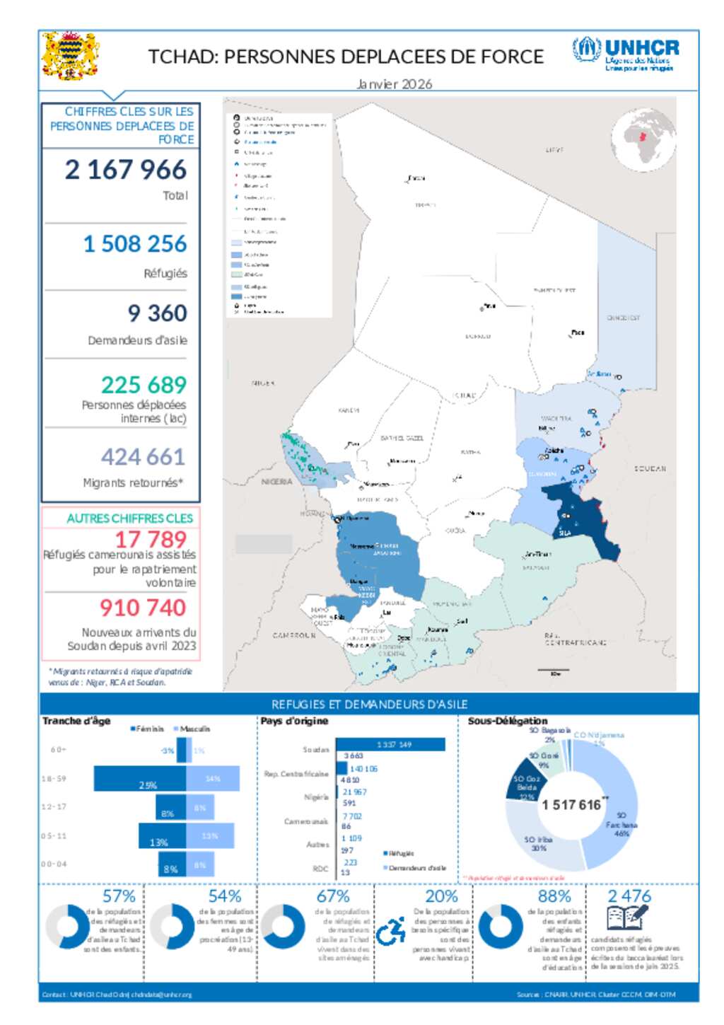 UNHCR TCHAD| Population des personnes en déplacement forcé au Tchad (Janvier 2026)