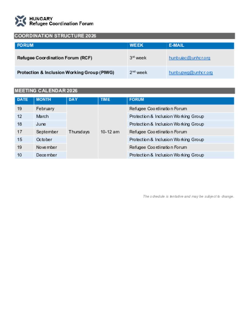 Hungary: 2026 Menekültügyi Koordinációs Struktúra és naptár / 2026 Refugee Coordination structure and calendar