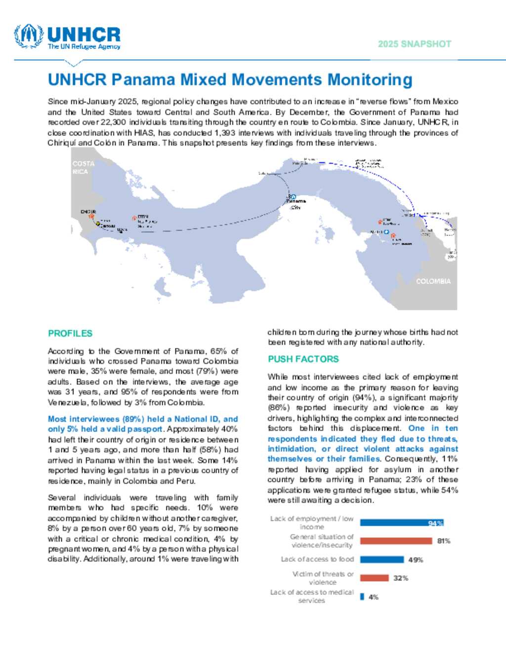 Main findings of the monthly reverse flow monitoring conducted by UNHCR in Chiriqui, Colon, and Panama provinces, Panama