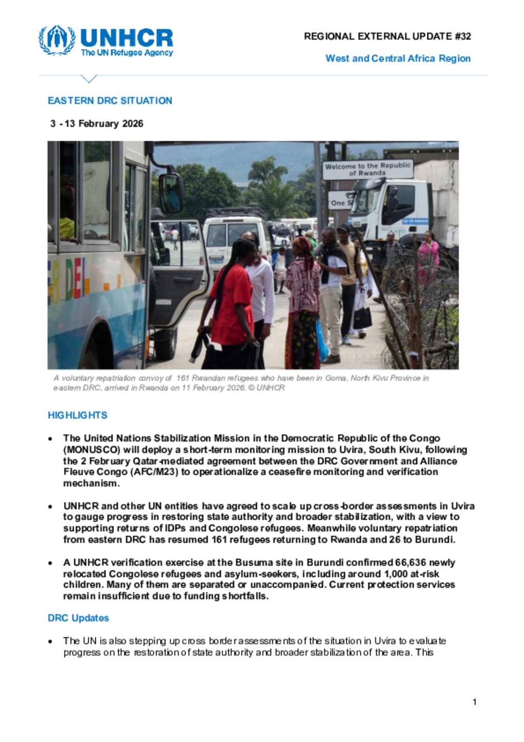 REGIONAL EXTERNAL UPDATE #32 West and Central Africa Region - EASTERN DRC SITUATION - 3-13 February 2026