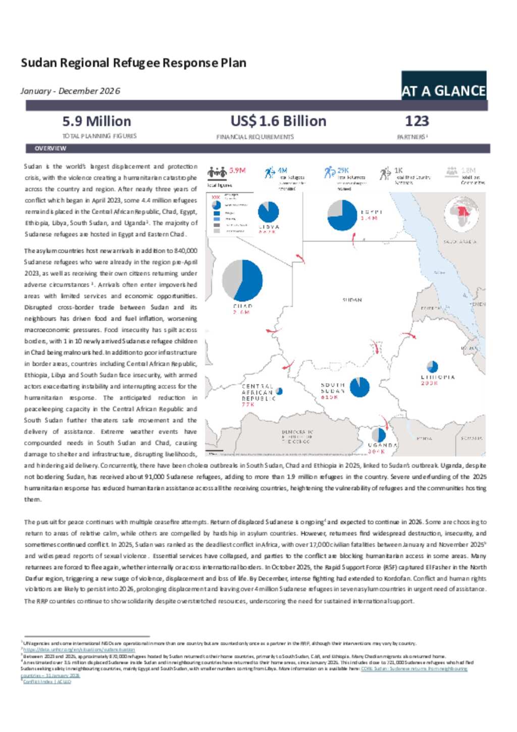 Sudan Regional Refugee Response Plan 2026 - At a Glance
