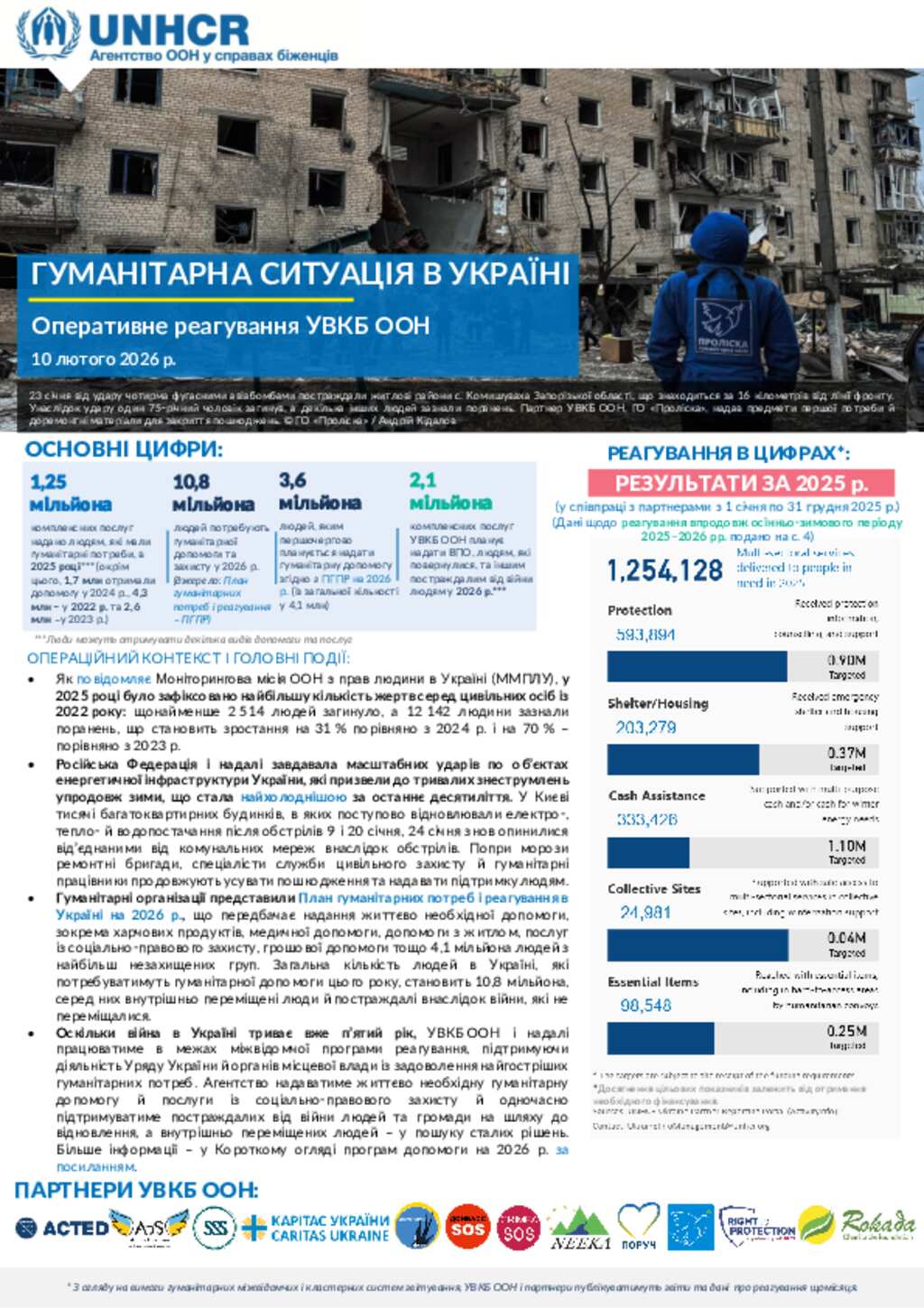 Гуманітарна ситуація в Україні: оновлення оперативного реагування УВКБ ООН. 10 лютого 2026 р.