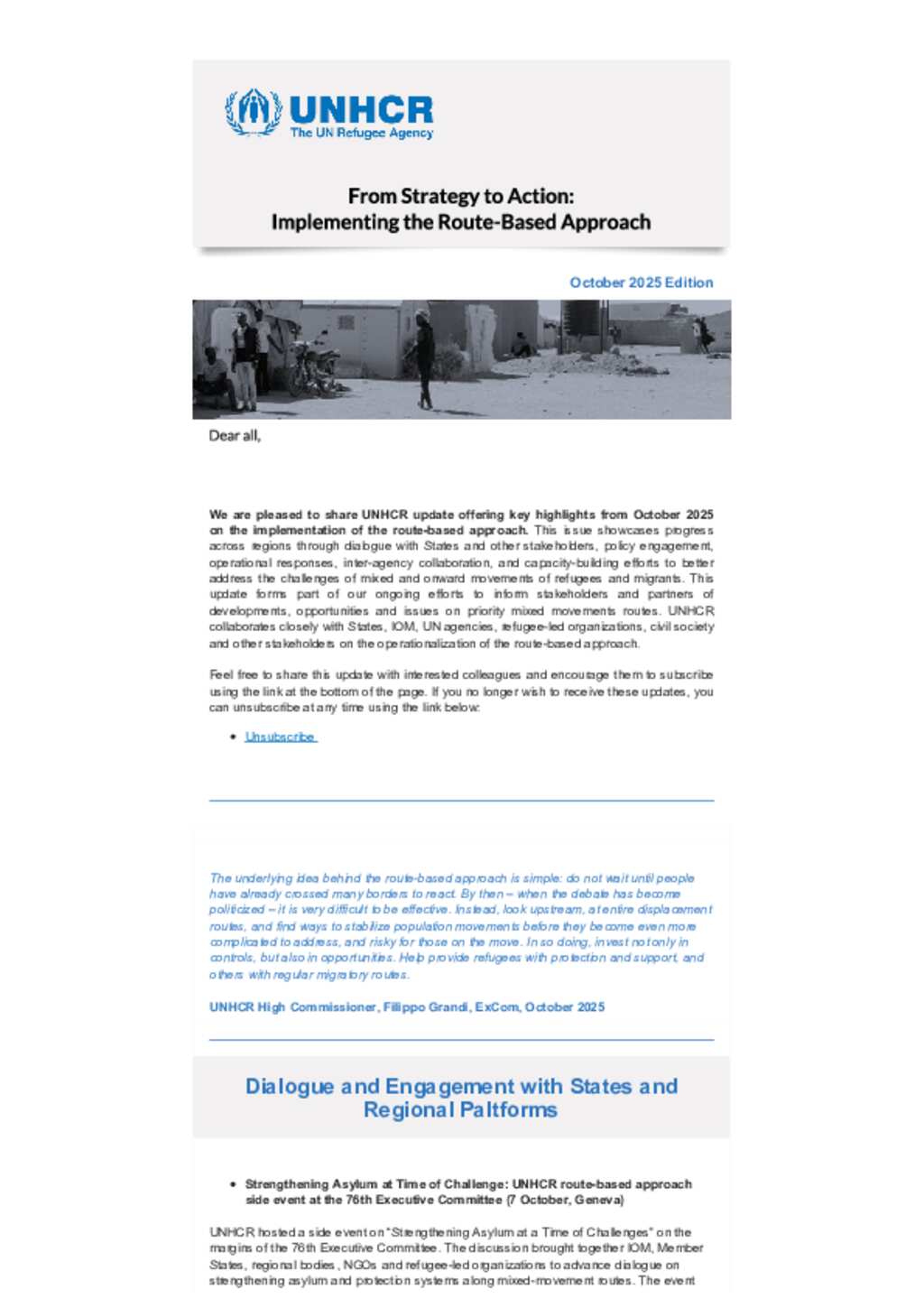 This newsletter offers brief insights into UNHCR’s route-based approach, highlighting progress and collaboration along key mixed-movement routes.