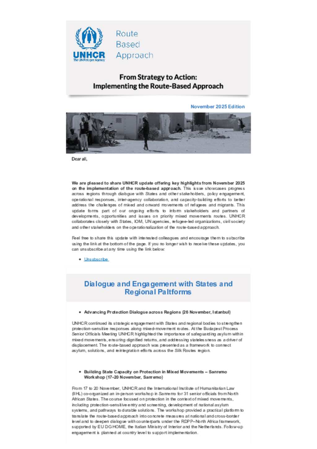 This newsletter offers brief insights into UNHCR’s route-based approach, highlighting progress and collaboration along key mixed-movement routes.