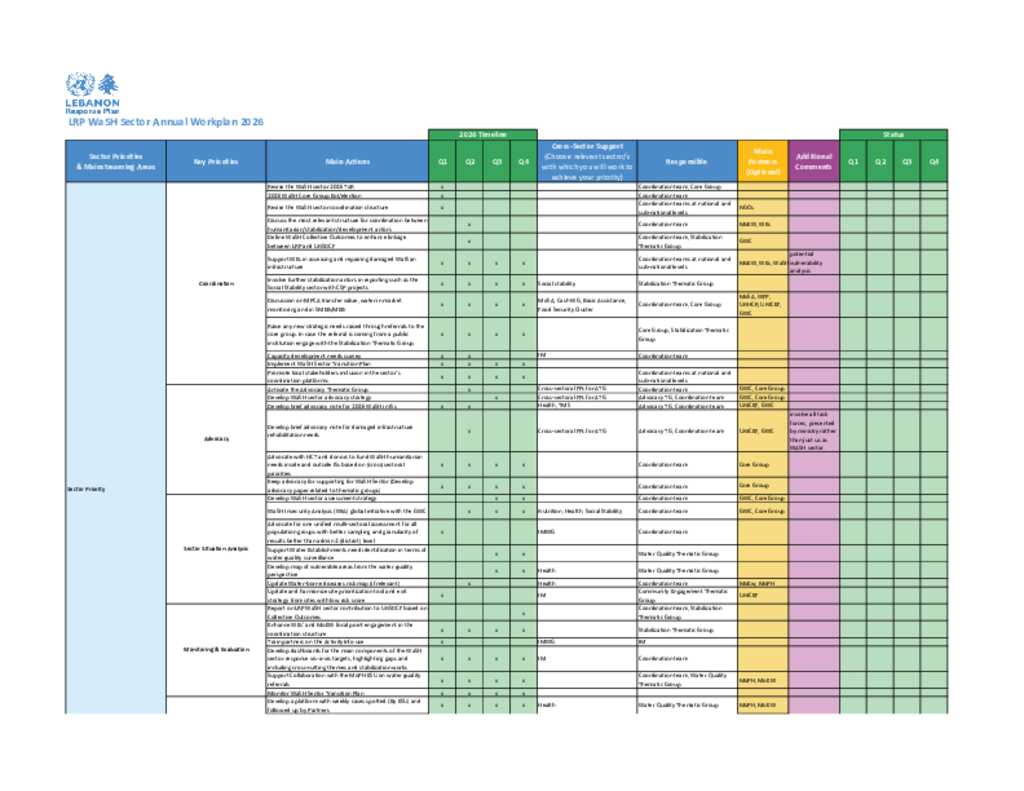 Lebanon Response Plan: WASH Sector Annual Work Plan - 2026