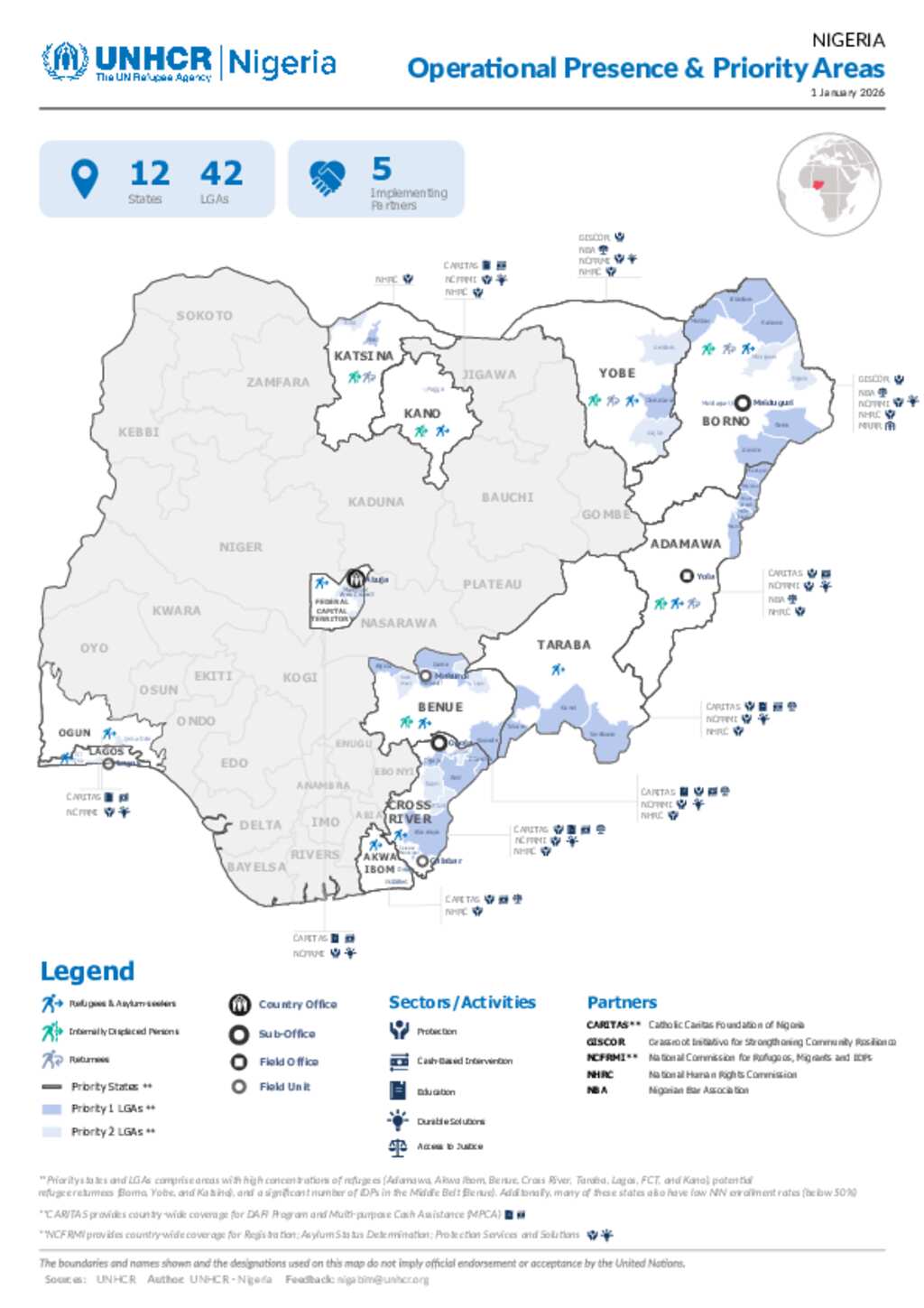 UNHCR Nigeria Operational Presence & Priority Areas Map - 1 January 2026